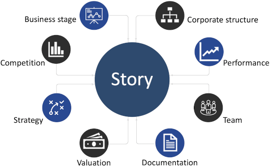 At easyCapital, we like to determine what is the appropriate "story" to make the opportunity attractive to investors. A number of factors will each contribute to the story, as shown here.
